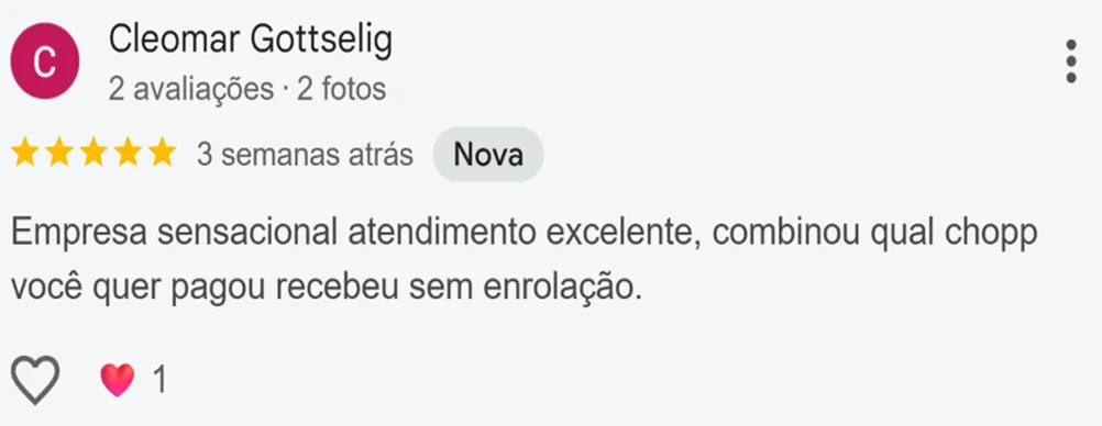 Entrega rápida e eficiente para garantir que seu chopp esteja fresco e gelado.